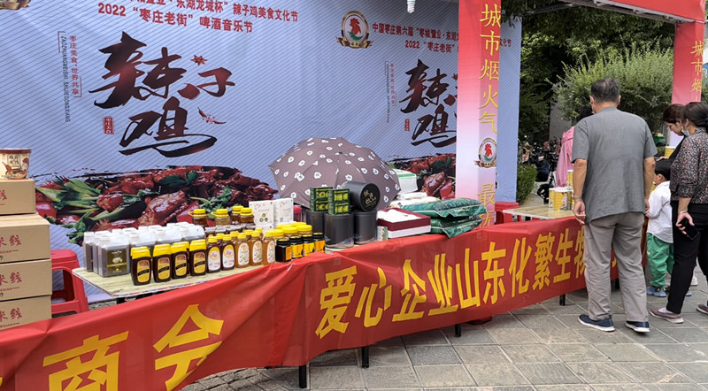此次盛會,棗莊市女企業(yè)家商會受邀并組織20余名會員參加。在商會會長盧春穎的帶領(lǐng)下,商會會員企業(yè)山東化繁生物科技有限公司、山東鼎養(yǎng)食品有限公司、棗莊暹羅印象泰國直營店三家企業(yè)現(xiàn)場布置展位參展,充分展示了會員企業(yè)優(yōu)秀的企業(yè)文化和豐富的特色產(chǎn)品。同時以盧會長為代表的還參加了百姓炒雞表演,展現(xiàn)了精湛的廚藝,商會副會長張月喬(山楂妹)受大會邀請參加開幕式并激情演唱自己的原唱歌曲。