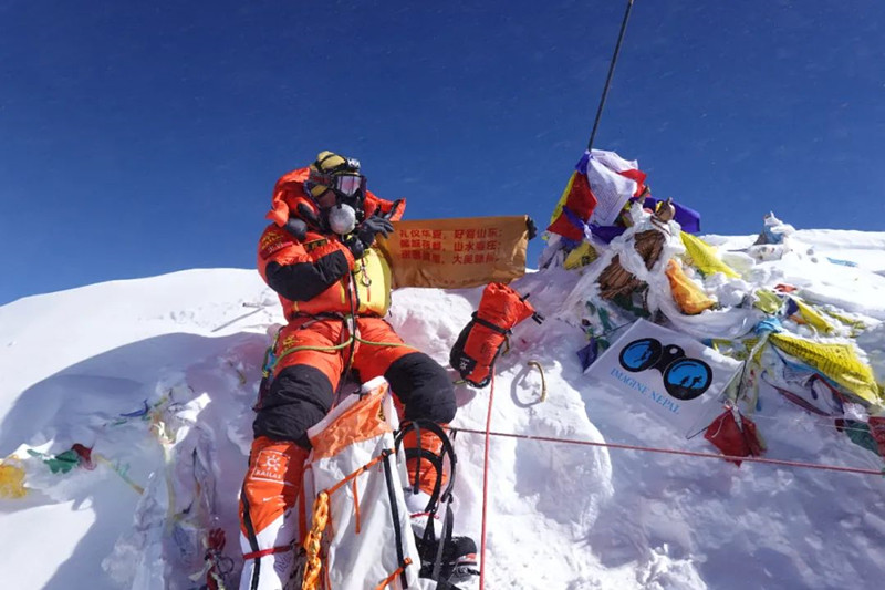 捐贈(zèng)儀式上,彭向雨分享了攀登珠峰的經(jīng)歷和感受。在攀登珠峰的過程中,彭向雨經(jīng)歷了嚴(yán)寒、缺氧、雪崩、滑墜、凍傷等一系列的艱難險(xiǎn)阻,成功登上海拔8848.86米的珠穆朗瑪峰峰頂,并將此次捐贈(zèng)的旗幟展示在珠峰峰頂上,用無畏艱險(xiǎn)、永不言敗、砥礪前行的力量,表達(dá)了攀登者登頂?shù)臎Q心和信念,也向全世界展示了棗莊人的勇氣和毅力。